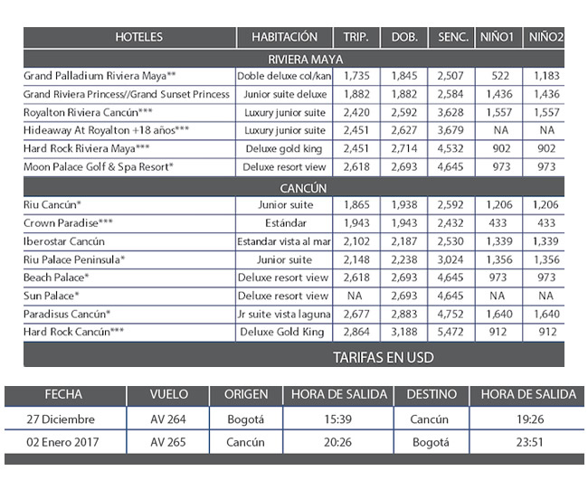 Cupos aéreos garantizados 27 diciembre al 02 enero del 2017